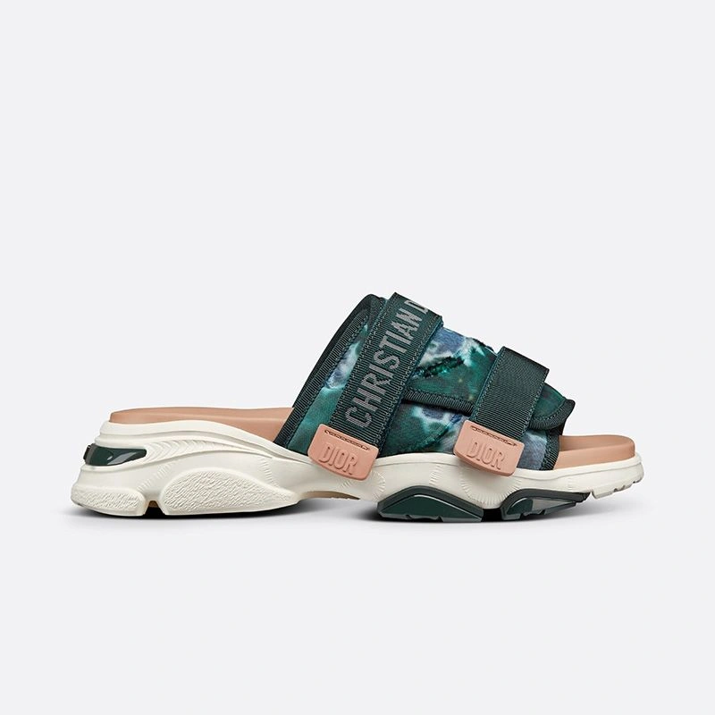 Dior D-Wander Slides Women Camouflage Tie & Dior Technical Fabric Green Trendy 2965
