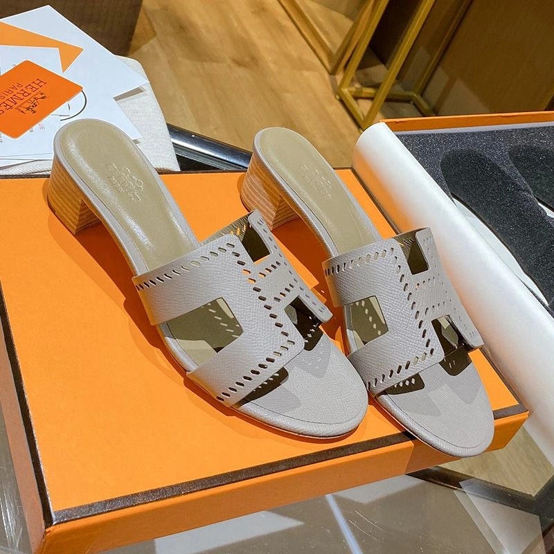 Hermes Oasis Slides Women Hollow Leather In Grey