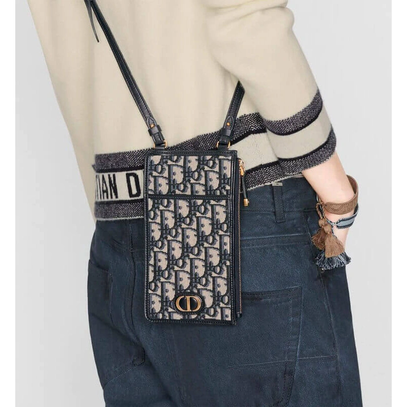 ‘CD’ sign Dior 30 Montaigne Long Wallet Blue Oblique Jacquard